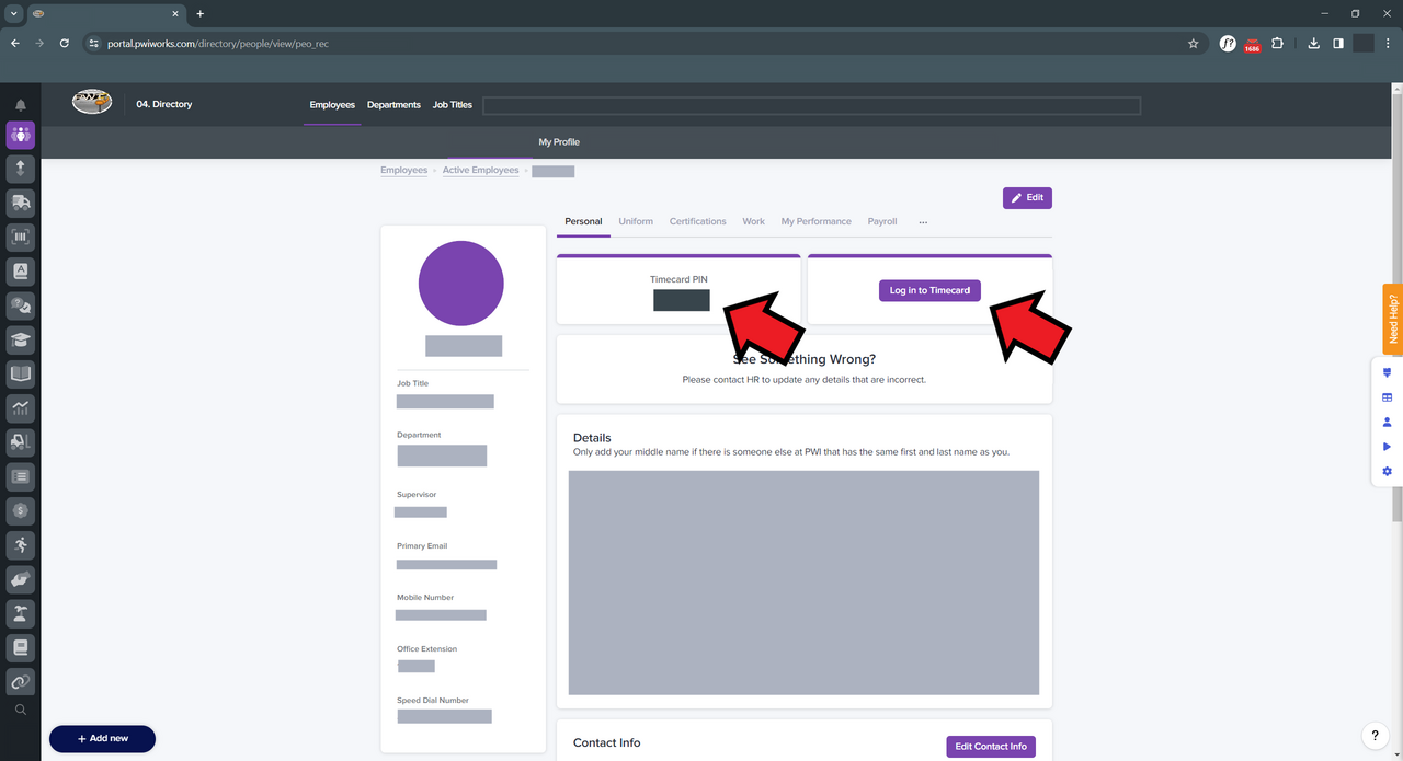 Click on the ⏲ ACCESS TIME CARD button on the portal.