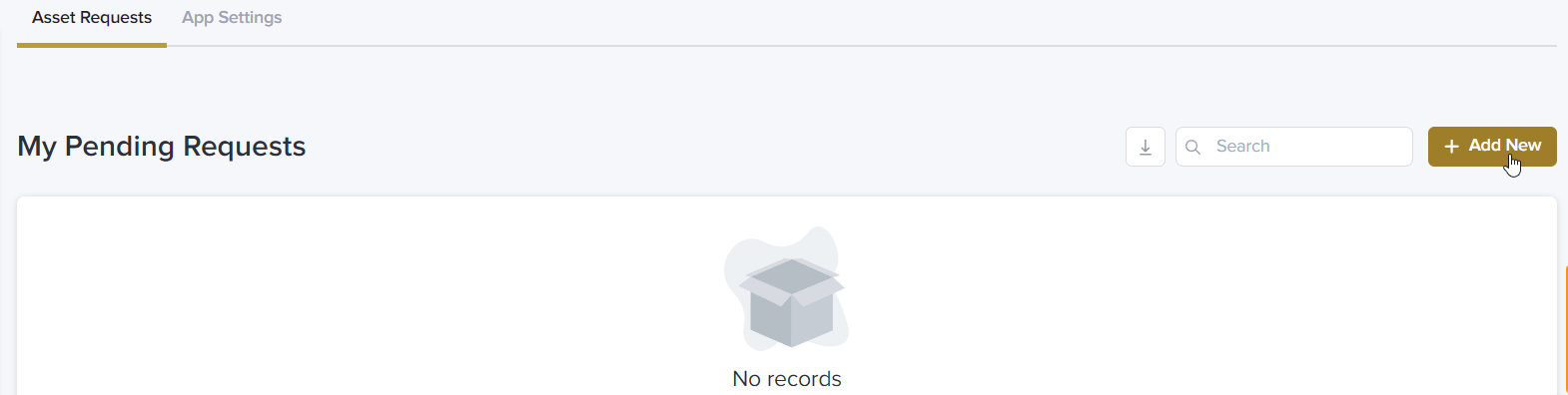 In My Profile, navigate to the right side of the page and make sure you are viewing the Asset Requests tab. Select + Add New to start a new asset request.