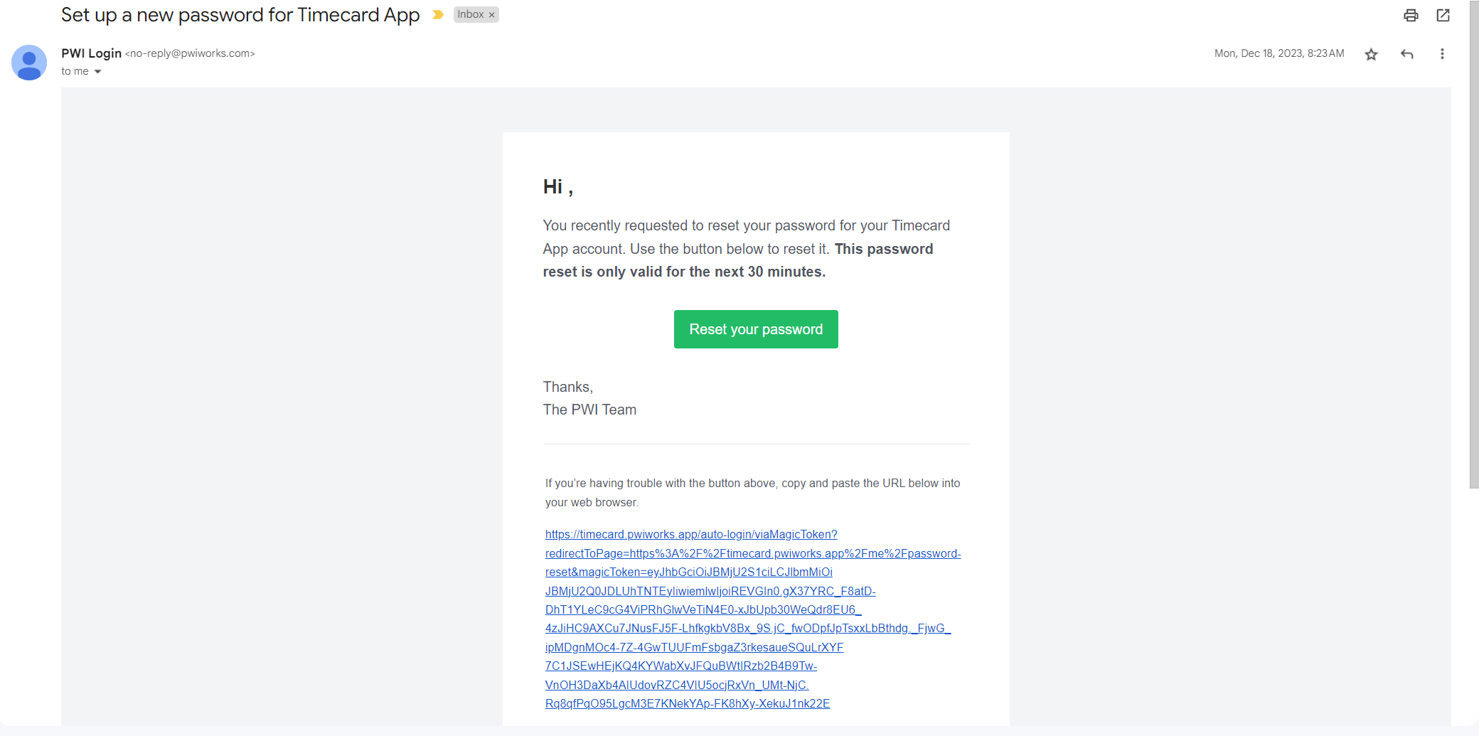 Enter your work email and wait to receive a "password reset" email. Click the link.