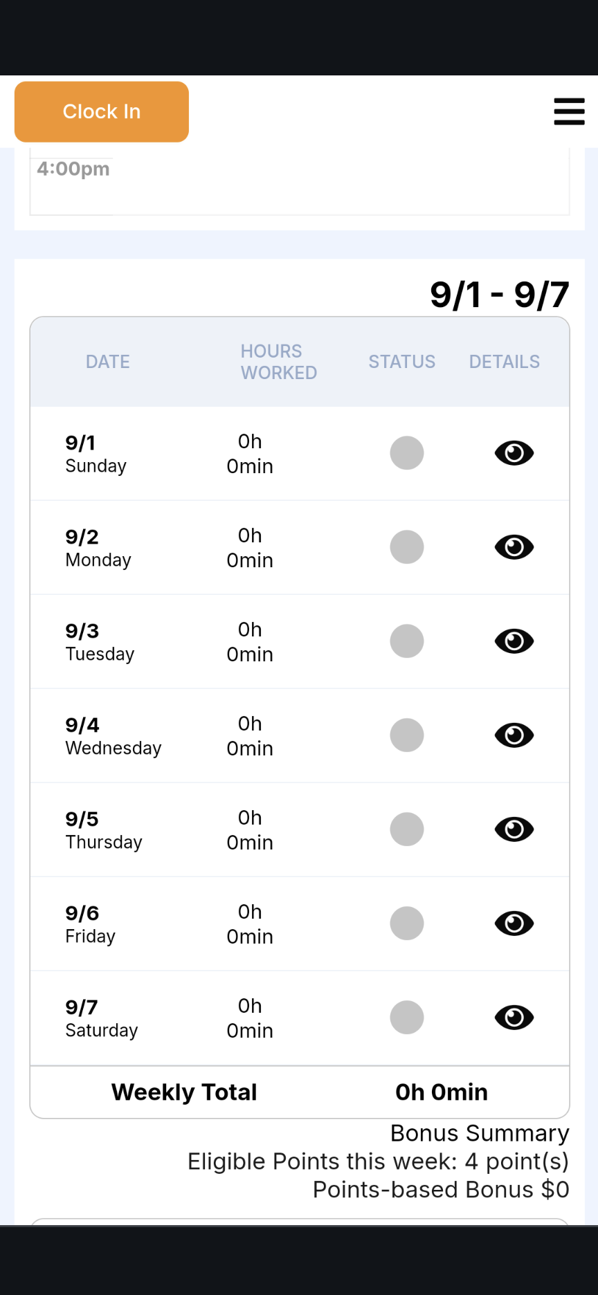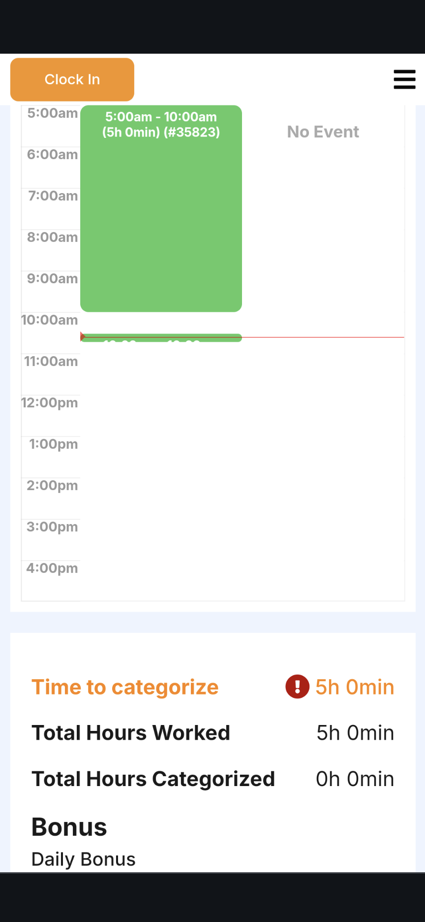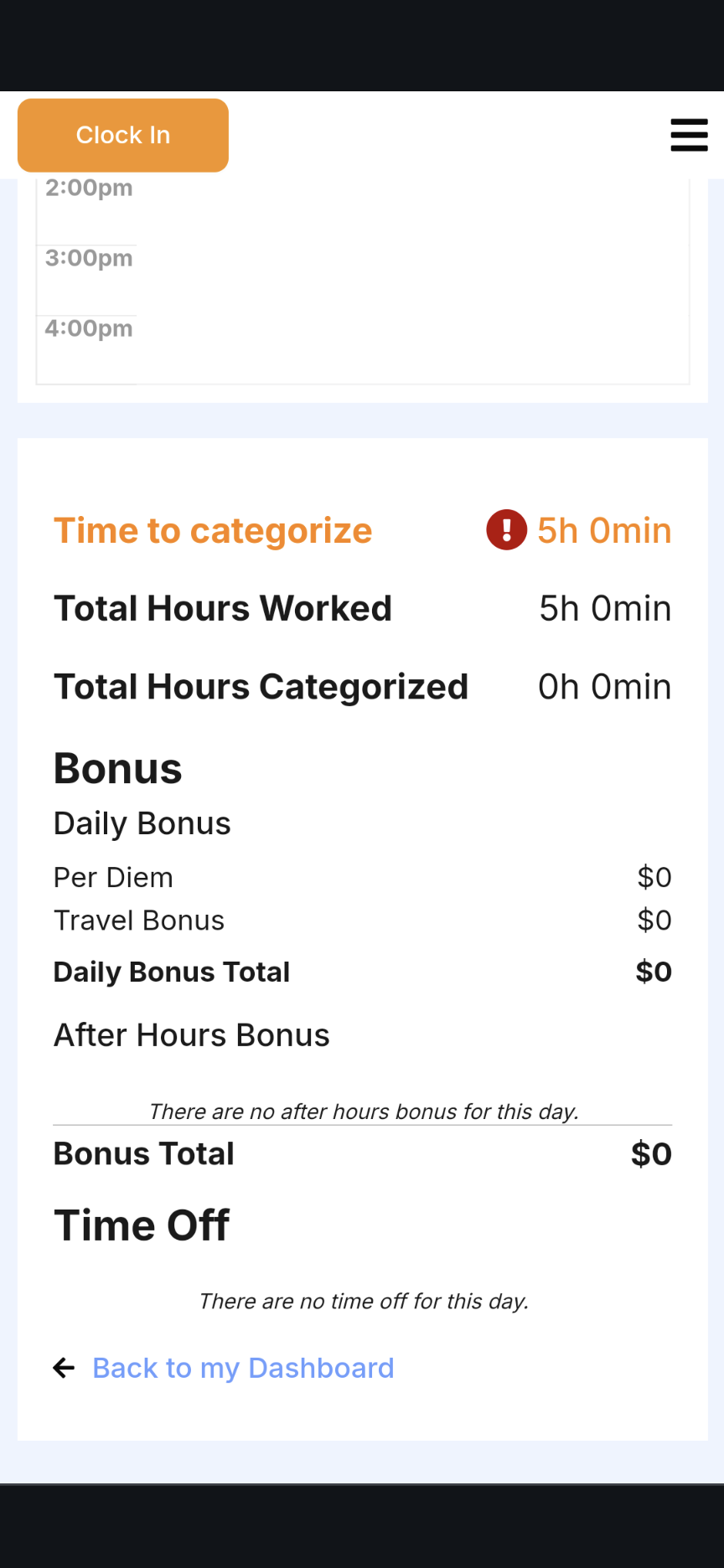 If you select one of these, it will show you a breakdown of your hours for whichever day you are viewing.